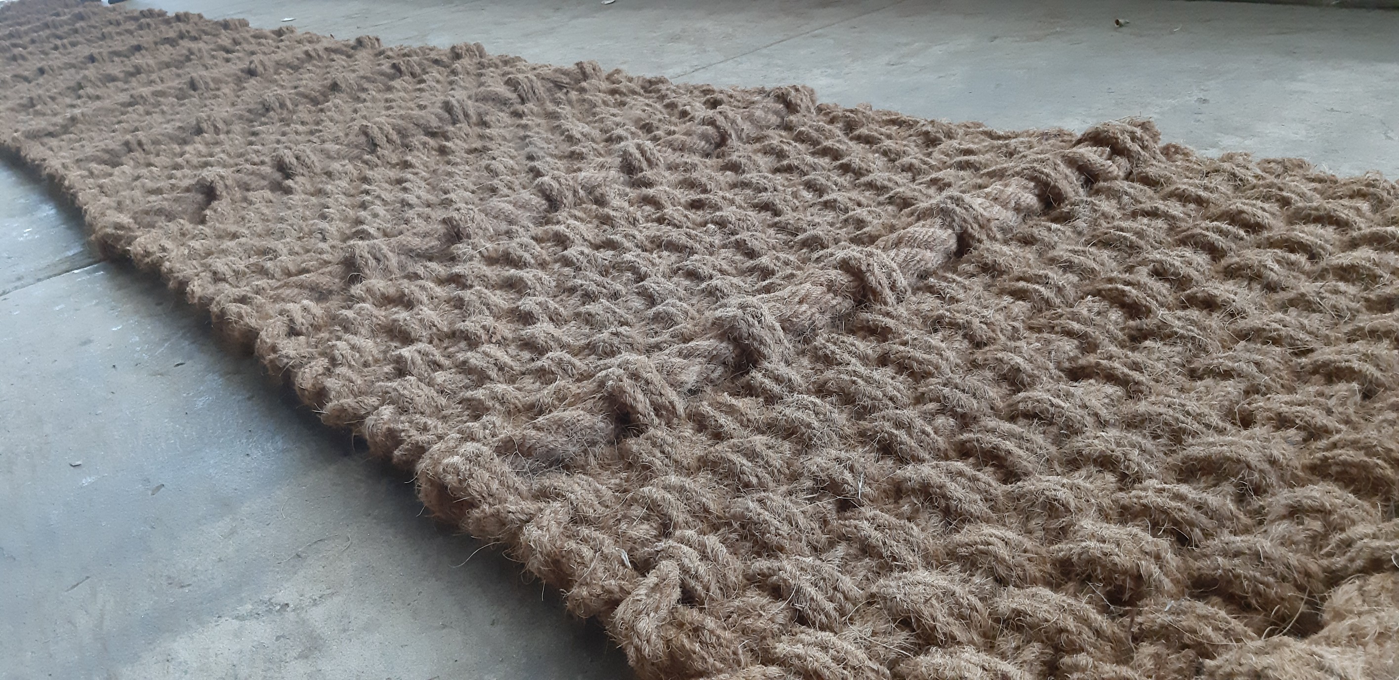 미끄럼방지야자매트는 1m 간격으로 두꺼운 야자로프를 넣어 만든 돌출부가 있어 특히 경사면에 깔면 미끄럼 방지에 도움이 되도록 설계된 제품입니다. 베트남 사람들은 자꾸 부피만 큰 저가의 로프를 넣어 이익을 보려하느라 하청업체를 단속하는데 어려움이 있습니다. 부피만 큰 로프는 금방 무너지기 때문에 전혀 효과가 없는데도 말이죠,